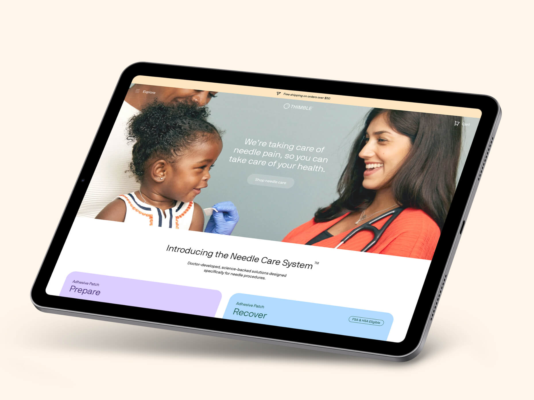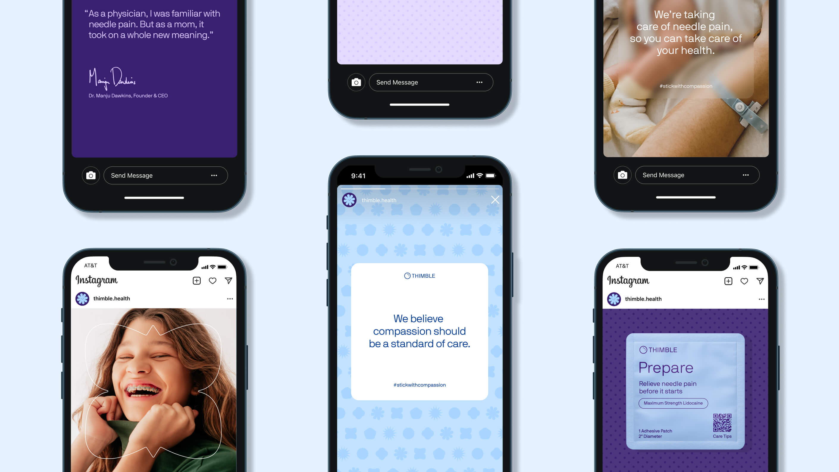 Thimble Taking the pain out of needles, one patch at a time. Client: Thimble is a physician-led startup aimed at alleviating needle fear, a common aversion affecting over 60% of people with soothing, compassionate brand experiences in healthcare. Category: Naming, Brand Identity, Packaging, Website, Strategy Role: Senior Designer Team: Season Studio Project Overview Thimble sought to transform a universal source of anxiety into something calming and approachable. We named and shaped their brand identity to evoke safety and comfort branding that feels gentle, optimistic, and completely free of sharp edges. The full suite spanned packaging, website, and marketing materials to support their pre-launch rollout. Design Thinking Our goal was to craft a brand that felt as gentle and empathetic as Thimble’s mission. We began by developing a name that communicates both care and protection, “Thimble” evokes a familiar tool used to guard against sharp points, making it the perfect metaphor for their needle-alternative product. From there, we built a visual identity centered around softness: rounded forms, muted contrasts, and approachable typography, all free of sharp edges, ensuring every touchpoint eased anxiety rather than triggered it. This identity extended seamlessly across packaging, digital, and event collateral, helping Thimble launch with a brand that breaks from sterile healthcare norms and instead feels human, warm, and calming. The outcome was a cohesive system that positioned Thimble as a trusted, compassionate innovator in health tech. One that speaks directly to the emotional experience of its users.